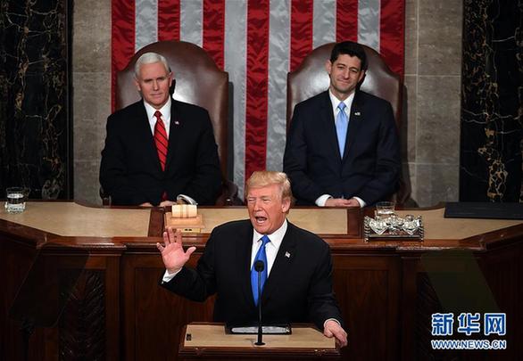 1月30日,美國(guó)總統(tǒng)特朗普(前)在華盛頓國(guó)會(huì)山發(fā)表其執(zhí)政以來的首次國(guó)情咨文演講。新華社記者 殷博古 攝