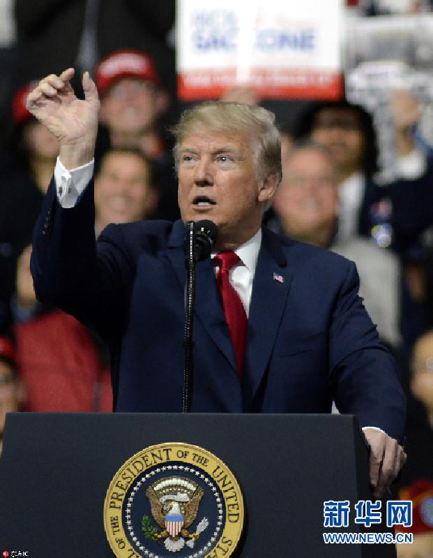 特朗普為共和黨聯(lián)邦議員競選站臺演講 表情包滿天飛