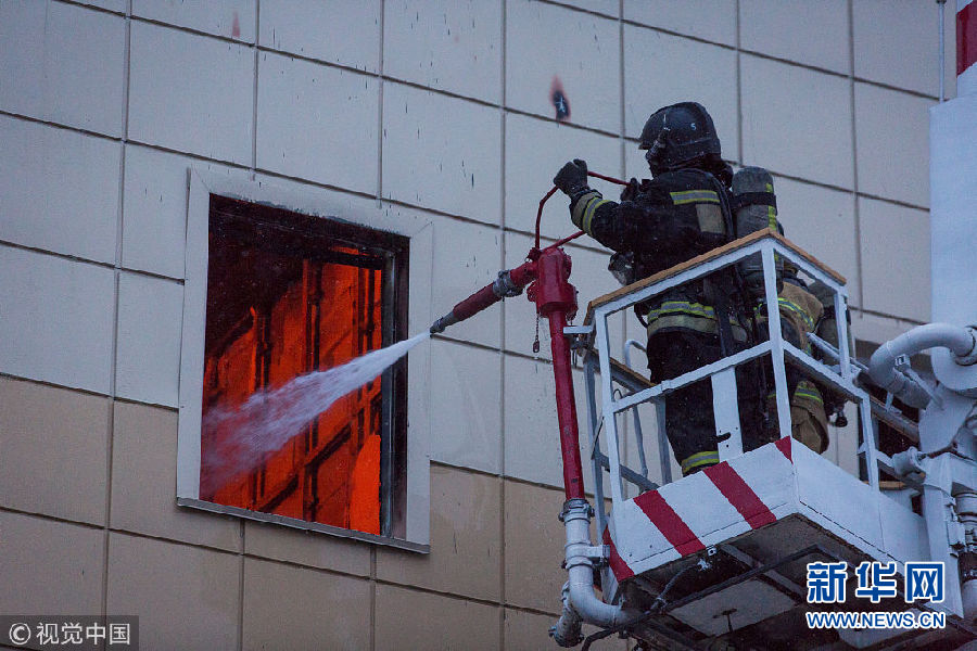 當?shù)貢r間2018年3月25日,俄羅斯西西伯利亞南部城市克麥羅沃一家購物中心發(fā)生重大火災。據(jù)俄緊急情況部26日發(fā)布的消息,大火已造成64人死亡。(圖片來源:視覺中國)