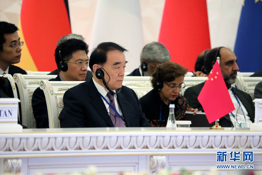 中國(guó)外交部副部長(zhǎng)李保東(前排左一)率團(tuán)參加會(huì)議。阿富汗問題高級(jí)別會(huì)議27日在烏茲別克斯坦首都塔什干舉行。新華社記者周良攝