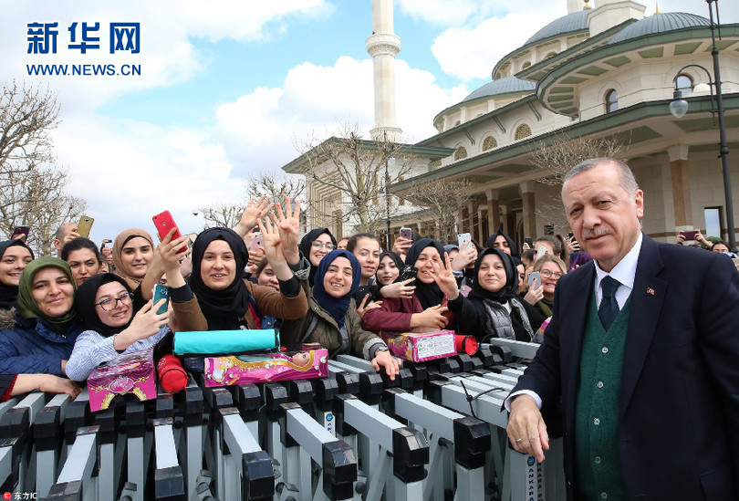 當(dāng)?shù)貢r間3月30日,土耳其安卡拉,土耳其總統(tǒng)埃爾多安在星期五禮拜結(jié)束后與民眾打招呼。(圖片來源:東方IC)
