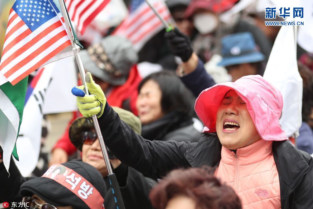 4月6日,韓國(guó)首爾,在首爾中央地方法院前,舉行集會(huì)的韓國(guó)前總統(tǒng)樸槿惠的支持者得知樸槿惠一審獲刑24年傷心落淚。據(jù)報(bào)道,首爾中央地方法院對(duì)韓國(guó)前總統(tǒng)樸槿惠作出一審宣判,判處其有期徒刑24年,罰款180億韓元(約合人民幣1.06億元)。(圖片來源:東方IC)