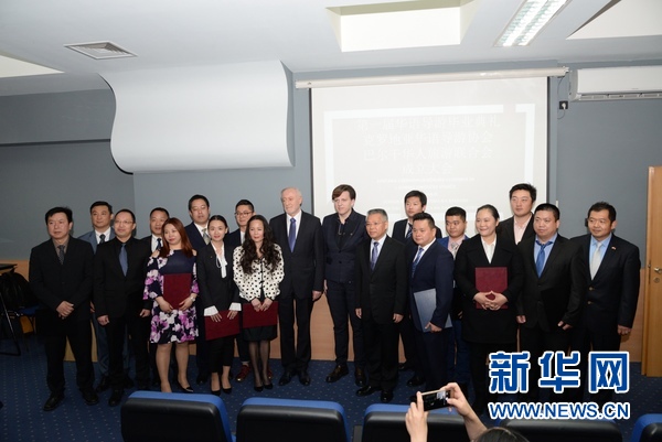 4月11日,首批通過克羅地亞導游職業(yè)資格考試的中國導游與歐洲地區(qū)華人旅游業(yè)者代表在薩格勒布合影。新華社記者高磊 攝?
