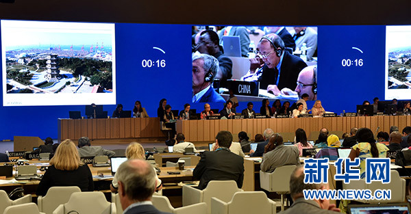6月29日,在巴林首都麥納麥,第42屆世界遺產委員會會議審議中國申報的“古泉州(刺桐)史跡”文化遺產項目。新華社記者 王波 攝