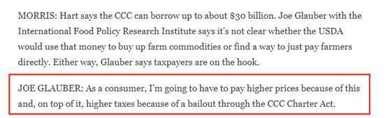 比如,一位美國愛荷華州立大學的學者就表示,單純增加農(nóng)業(yè)補貼根本無法在貿(mào)易戰(zhàn)這樣的沖突中保護農(nóng)民的權益。而另一位美國食品領域的學者則表示,即便特朗普政府會出面直接收購農(nóng)民的產(chǎn)品,這些收購的錢款還不是得從消費者——即納稅人——的口袋里出?