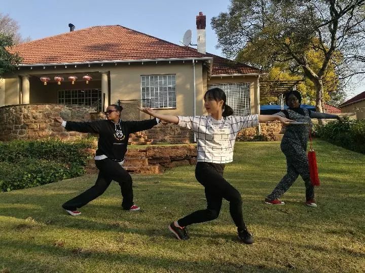約翰內(nèi)斯堡大學(xué)孔子學(xué)院,和煦陽(yáng)光灑滿院落,幾名南非學(xué)生正在認(rèn)真練習(xí)中國(guó)功夫。