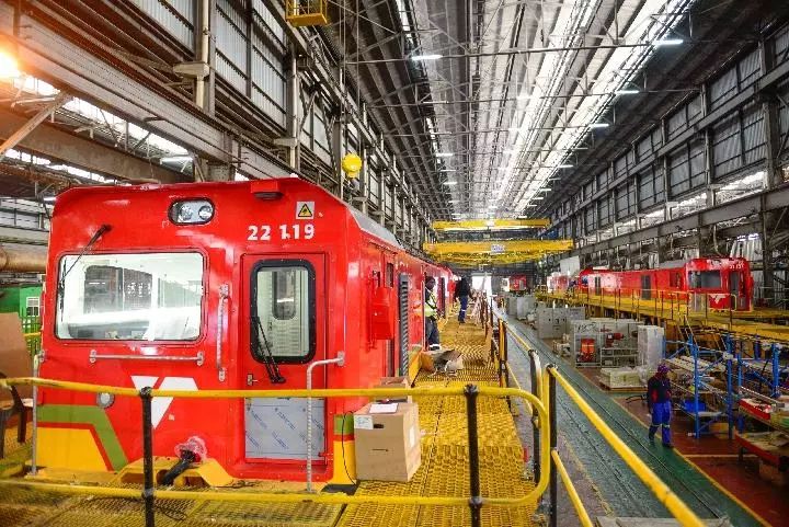 2017年7月27日,南非比勒陀利亞南非運(yùn)輸集團(tuán)工廠組裝車間,兩臺(tái)中國(guó)機(jī)車等待組裝。(新華社記者翟健嵐攝)