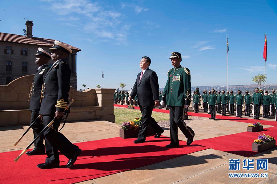 會談前,拉馬福薩為習(xí)近平舉行隆重歡迎儀式。
