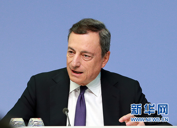 7月26日,在德國法蘭克福的歐洲中央銀行總部,歐洲央行行長德拉吉出席新聞發(fā)布會。 新華社記者 羅歡歡 攝