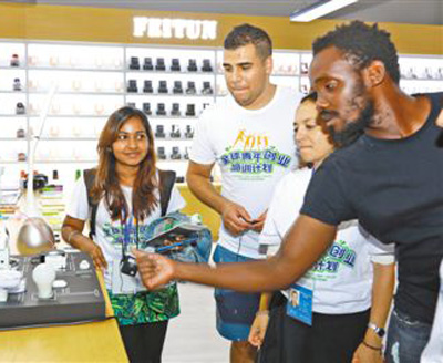 來自印度、南非、俄羅斯等金磚國家的青年創(chuàng)業(yè)者,在義烏國際商貿(mào)城內(nèi)學(xué)習(xí)創(chuàng)業(yè)經(jīng)驗。人民視覺