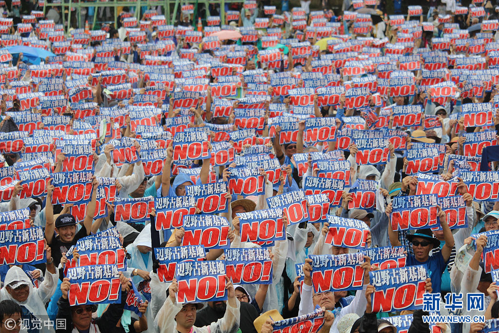 當(dāng)?shù)貢r(shí)間2018年8月11日,日本沖繩縣約7萬民眾8月11日在那霸市舉行大規(guī)模集會,反對駐日美軍將普天間基地遷往名護(hù)市邊野古地區(qū),要求駐日美軍放棄在邊野古地區(qū)新建基地并立即關(guān)閉普天間機(jī)場。當(dāng)天,日本東京都、大阪府、福岡、北海道縣等地民眾也同時(shí)舉行集會和游行,抗議日本政府推進(jìn)邊野古地區(qū)填海施工。(圖片來源:視覺中國)