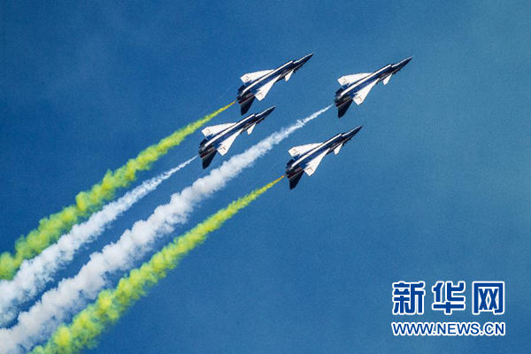 蔚藍(lán)的天空下,八一飛行表演隊(duì)成功上演了六機(jī)向下開花、五機(jī)水平向上開花、四機(jī)編隊(duì)橫滾、單機(jī)蛇行扭轉(zhuǎn)等21個(gè)高難度飛行動(dòng)作,贏得了現(xiàn)場(chǎng)觀眾陣陣掌聲。