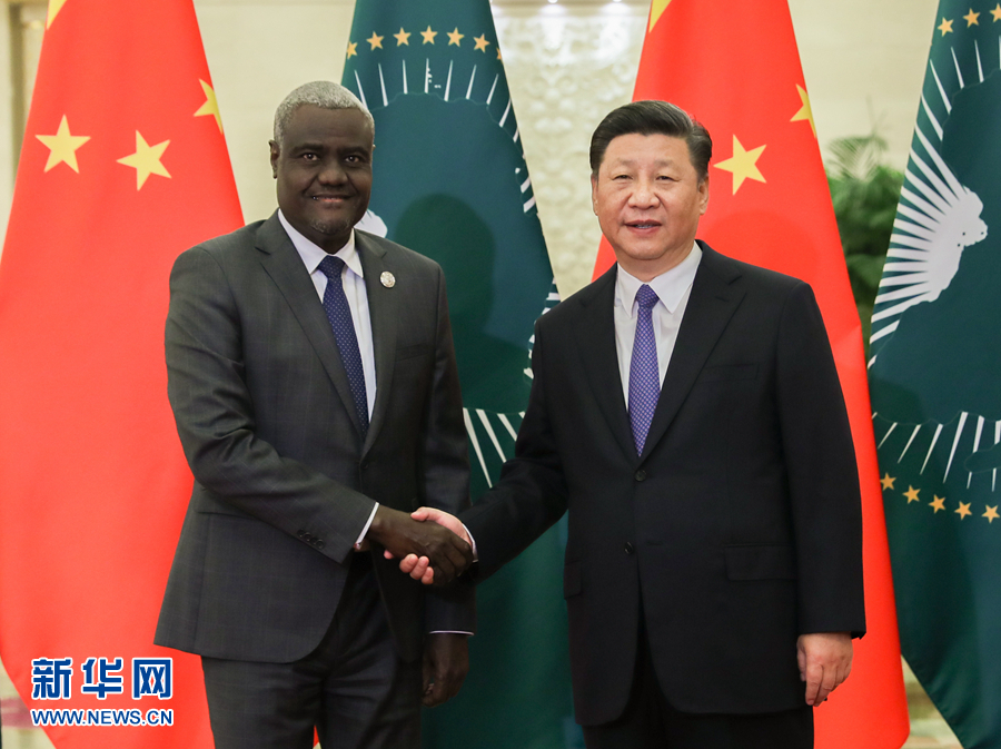 9月5日,國家主席習近平在北京人民大會堂會見非洲聯(lián)盟委員會主席法基。新華社記者 李濤 攝