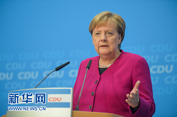 10月29日,在德國柏林,德國總理默克爾在基督教民主聯(lián)盟黨內(nèi)發(fā)布會上講話。新華社記者 連振 攝