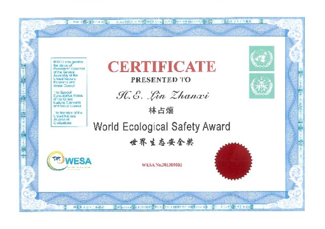 林占熺獲得世界生態(tài)安全獎(jiǎng)——個(gè)人。(林占熺提供)