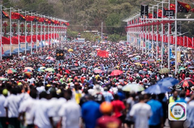 2018年11月16日,巴布亞新幾內(nèi)亞首都莫爾茲比港。民眾慶祝中國(guó)援建的獨(dú)立大道正式啟用。(新華社記者費(fèi)茂華攝)