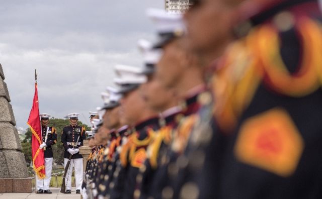 杜特爾特為習(xí)主席在總統(tǒng)府前草坪舉行了隆重歡迎儀式。習(xí)近平在杜特爾特陪同下檢閱儀仗隊(duì)。