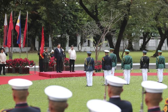 11月20日,國(guó)家主席習(xí)近平在馬尼拉同菲律賓總統(tǒng)杜特爾特舉行會(huì)談。會(huì)談開始前,習(xí)近平出席杜特爾特在總統(tǒng)府前草坪舉行的隆重歡迎儀式。(新華社記者 丁林 攝)