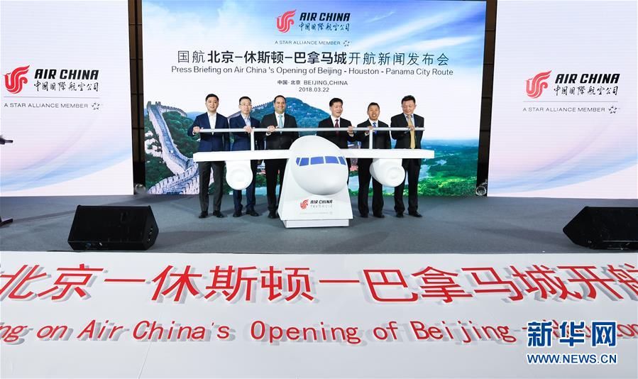 2018年3月22日,嘉賓在北京為北京—休斯頓—巴拿馬城航線開通揭幕。中國國際航空公司于4月5日開通此條新航線。新華社記者 李賀 攝