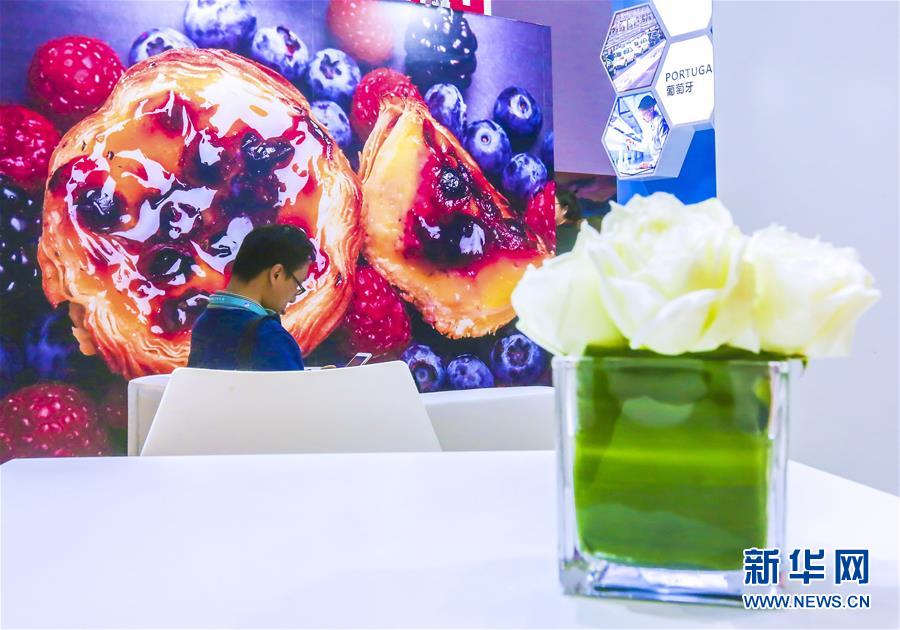 2018年11月6日,在中國上海,一位男士坐在中國國際進口博覽會的葡萄牙展區(qū)內。新華社記者 殷剛 攝