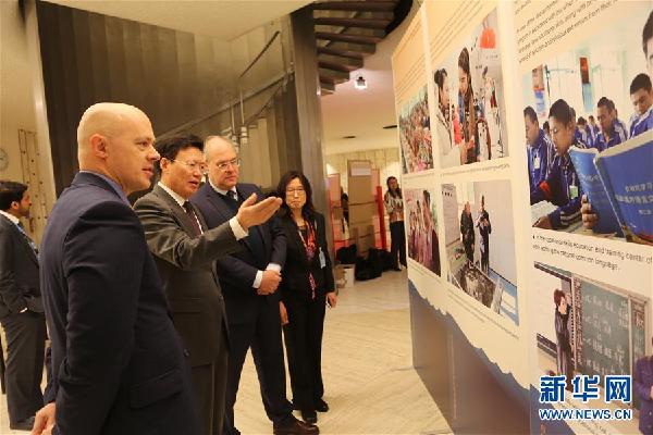 3月4日,在瑞士日內(nèi)瓦聯(lián)合國萬國宮,來賓參觀“中國新疆人權事業(yè)發(fā)展進步”圖片展。新華社記者 施建國 攝