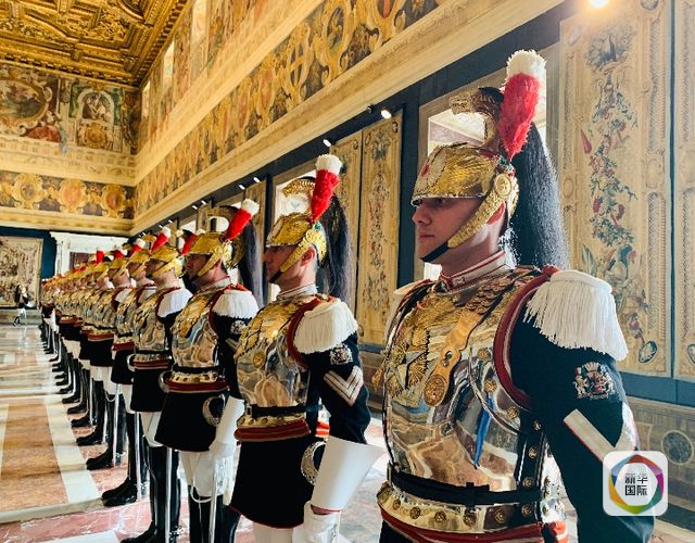 3月23日,意大利總統(tǒng)馬塔雷拉在總統(tǒng)府為國(guó)家主席習(xí)近平舉行隆重歡送儀式。圖為意大利禮兵列隊(duì)準(zhǔn)備歡送習(xí)近平。(新華社記者高潔攝)