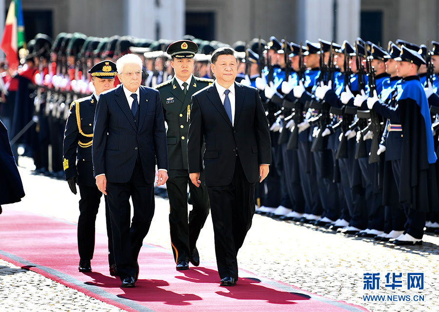3月22日,國(guó)家主席習(xí)近平在羅馬同意大利總統(tǒng)馬塔雷拉舉行會(huì)談。會(huì)談前,馬塔雷拉總統(tǒng)為習(xí)近平舉行隆重歡迎儀式。(新華社記者謝環(huán)馳攝)