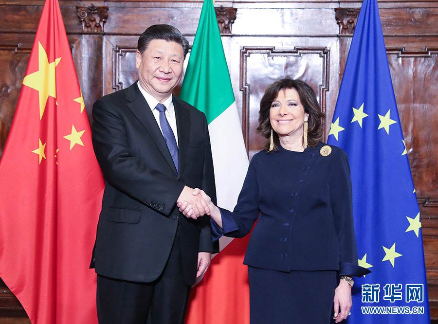 3月22日,國(guó)家主席習(xí)近平在羅馬會(huì)見意大利參議長(zhǎng)卡塞拉蒂。(新華社記者姚大偉攝)