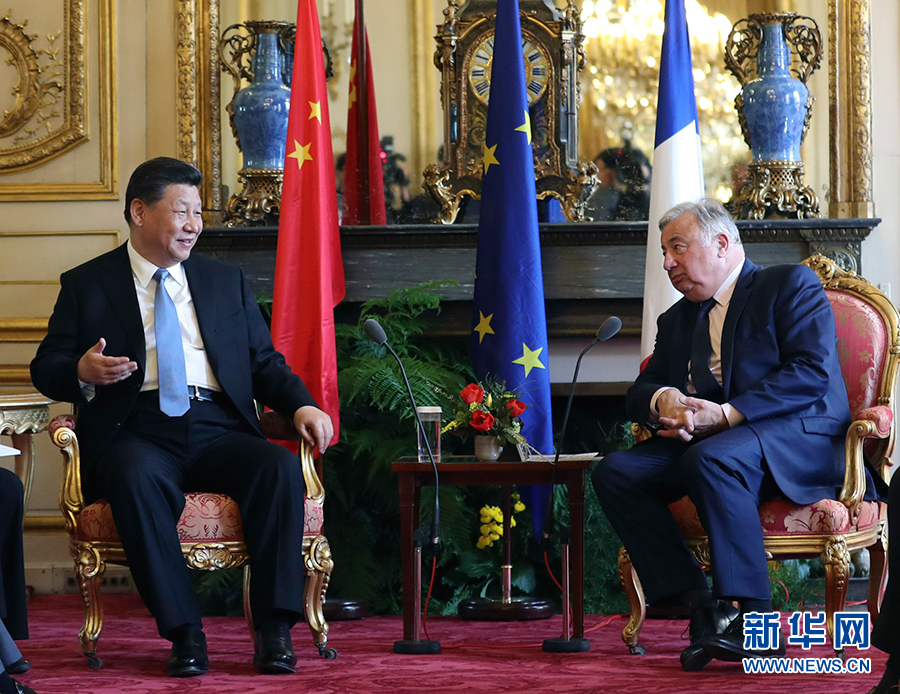 3月26日,國家主席習(xí)近平在巴黎會見法國參議長拉爾歇。 新華社記者丁海濤攝