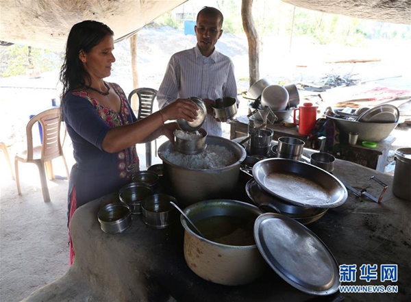 用餐高峰時(shí)期,占茜每頓要做20多份飯菜。阿查亞上夜班居多,每天早上下班后,他就給妻子打下手,幫她張羅飯菜。