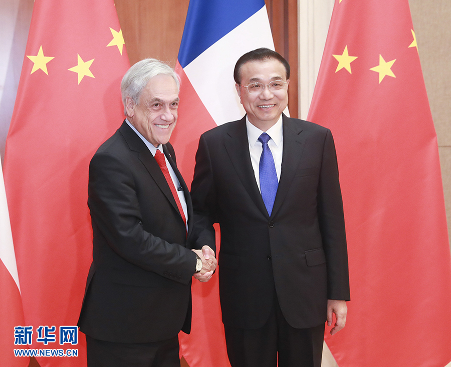 李克強表示,智利是第一個同新中國建交的南美國家,明年將迎來兩國建交50周年。習(xí)近平主席同總統(tǒng)先生舉行了富有成果的會談,為中智全面戰(zhàn)略伙伴關(guān)系深入發(fā)展注入新動力。去年,在全球貿(mào)易增長乏力背景下,中智貿(mào)易逆勢增長,顯示出兩國合作的巨大潛力。希望雙方面向未來,以深入共建“一帶一路”為契機,加強發(fā)展戰(zhàn)略對接,建設(shè)好升級版中智自貿(mào)區(qū),拓展在交通基礎(chǔ)設(shè)施、電力、農(nóng)業(yè)、礦業(yè)、創(chuàng)新等領(lǐng)域的務(wù)實合作。中方愿進(jìn)口更多智利優(yōu)質(zhì)產(chǎn)品,發(fā)揮電子商務(wù)等數(shù)字經(jīng)濟平臺作用,并利用中智自貿(mào)區(qū)擴大同拉美其他國家的經(jīng)貿(mào)合作,不斷推動中拉整體關(guān)系與合作向前發(fā)展。