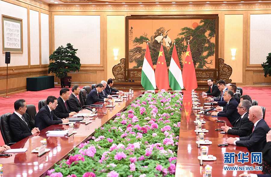 習近平指出,2017年,我和總理先生共同宣布兩國建立全面戰(zhàn)略伙伴關系,中匈關系進入“換擋提速”的歷史新階段。今年是中匈建交70周年。中方期待同匈方一道努力,推動兩國全面戰(zhàn)略伙伴關系邁向新高度。雙方要保持高層交往熱度,做好政治引領;提升互尊互信水平,深化戰(zhàn)略認同;加大務實合作力度,實現(xiàn)互利共贏;拓寬人文交流廣度,促進民心相通。下階段,我們要落實好匈塞鐵路等“一帶一路”框架內(nèi)合作,爭取更多實質成果。中國-中東歐合作是中歐關系重要組成部分,希望匈方為此發(fā)揮更大作用。