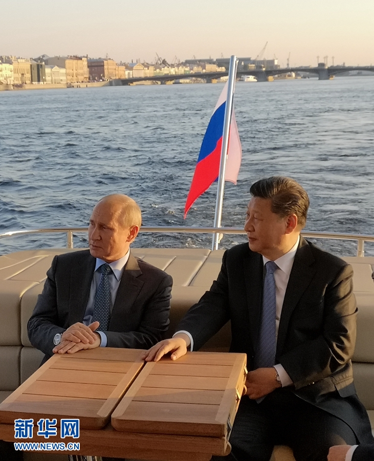 6月6日,國家主席習(xí)近平在圣彼得堡同俄羅斯總統(tǒng)普京再次舉行會晤。普京邀請習(xí)近平共同乘船游覽涅瓦河。普京歡迎習(xí)近平再次到訪他的家鄉(xiāng),并向習(xí)近平介紹圣彼得堡的風(fēng)土人情和沿途建筑。 新華社發(fā)