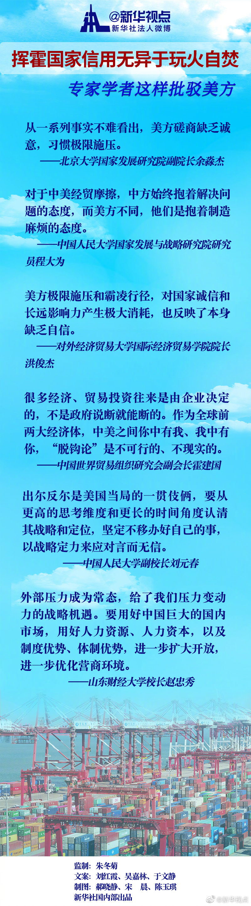 中國人民大學(xué)副校長劉元春認(rèn)為,出爾反爾是美國當(dāng)局的一貫伎倆,要從更高的思考維度和更長的時(shí)間角度認(rèn)清其戰(zhàn)略和定位,堅(jiān)定不移辦好自己的事,以戰(zhàn)略定力來應(yīng)對(duì)言而無信。