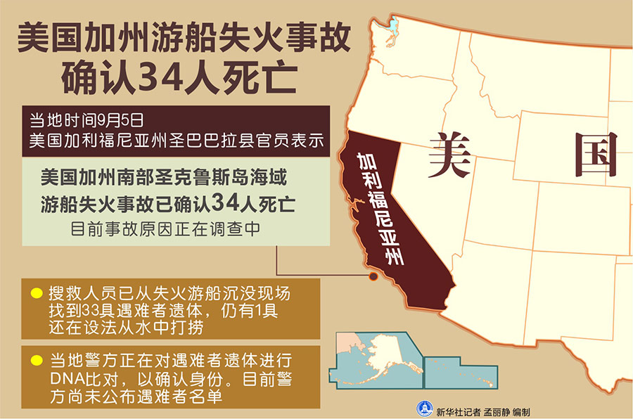 美國(guó)加州游船失火事故確認(rèn)34人死亡-新華網(wǎng)