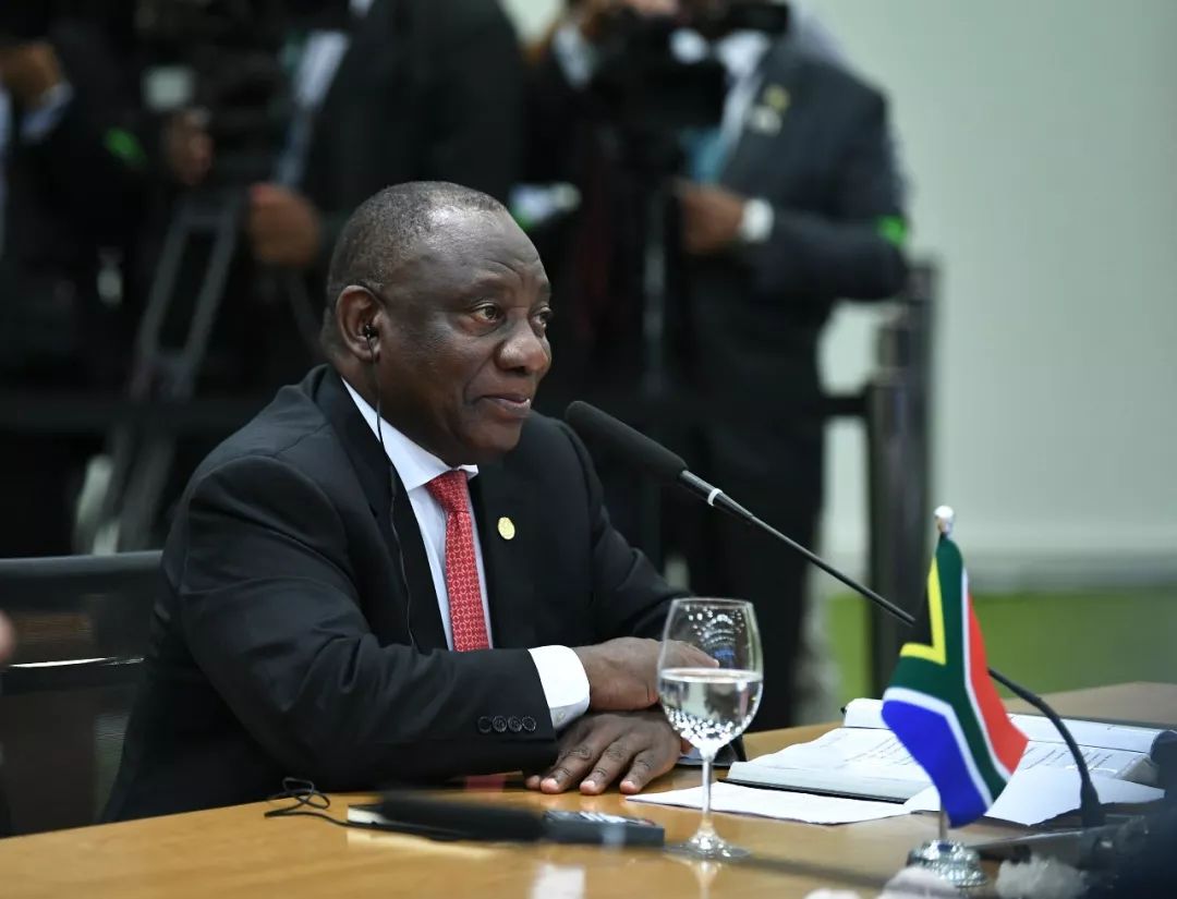 ▲當(dāng)?shù)貢r間11月14日,國家主席習(xí)近平在巴西利亞會見南非總統(tǒng)拉馬福薩。新華社記者王曄攝