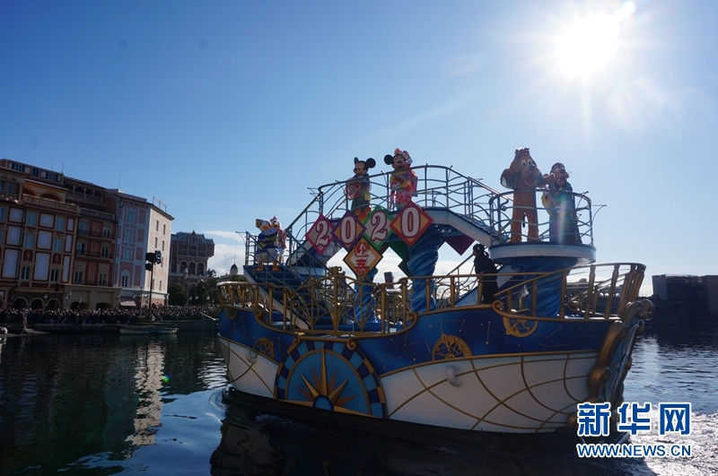 1月1日,在日本東京迪士尼海洋樂(lè)園,裝扮成迪士尼卡通人物的演員在新年巡游上表演。楊汀 攝