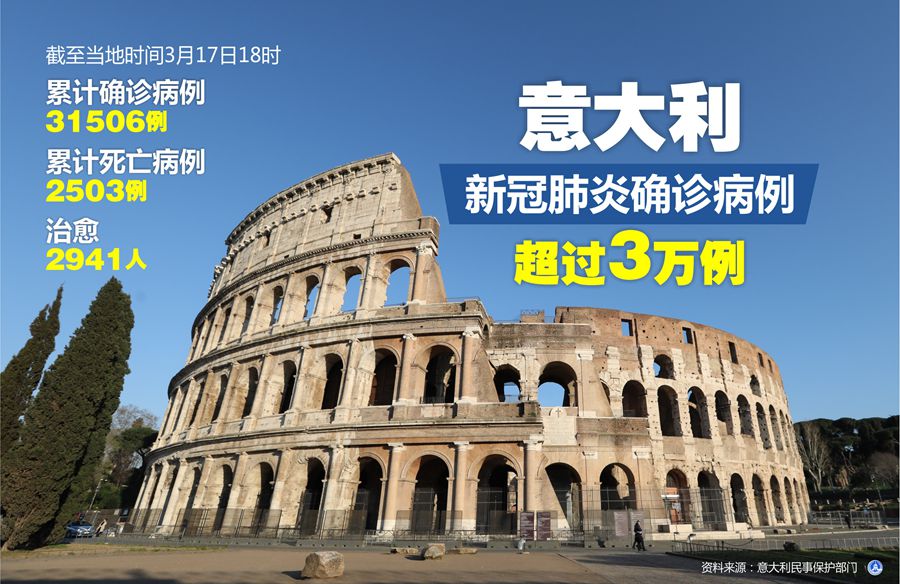 新華社羅馬3月17日電(記者李潔)意大利民事保護(hù)部門負(fù)責(zé)人、新冠病毒應(yīng)急委員會(huì)專員博雷利17日說,截至當(dāng)天18時(shí),意大利累計(jì)新冠肺炎確診病例升至31506例,累計(jì)死亡病例升至2503例,另有2941人治愈。