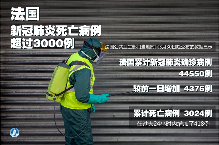 新華社巴黎3月30日電(記者陳晨)法國(guó)公共衛(wèi)生部門30日晚公布的數(shù)據(jù)顯示,法國(guó)累計(jì)新冠肺炎確診病例44550例,較前一日增加4376例;累計(jì)死亡病例3024例,在過去24小時(shí)內(nèi)增加了418例。