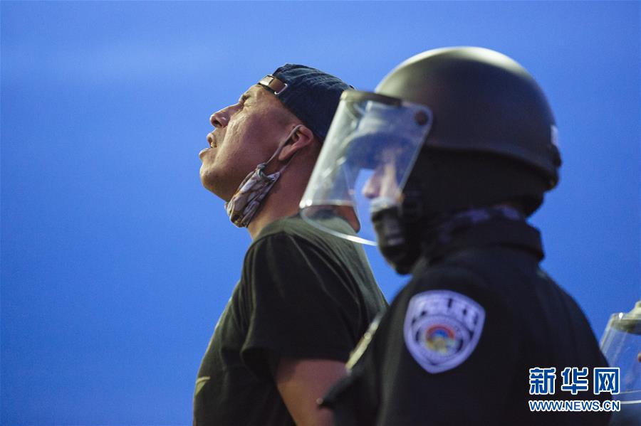 5月31日,在美國明尼蘇達(dá)州明尼阿波利斯市,示威者被警察逮捕。 新華社發(fā)(安格斯·亞歷山大攝)