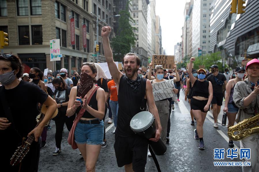 6月6日,人們在美國紐約街頭抗議。 新華社發(fā)(郭克 攝)