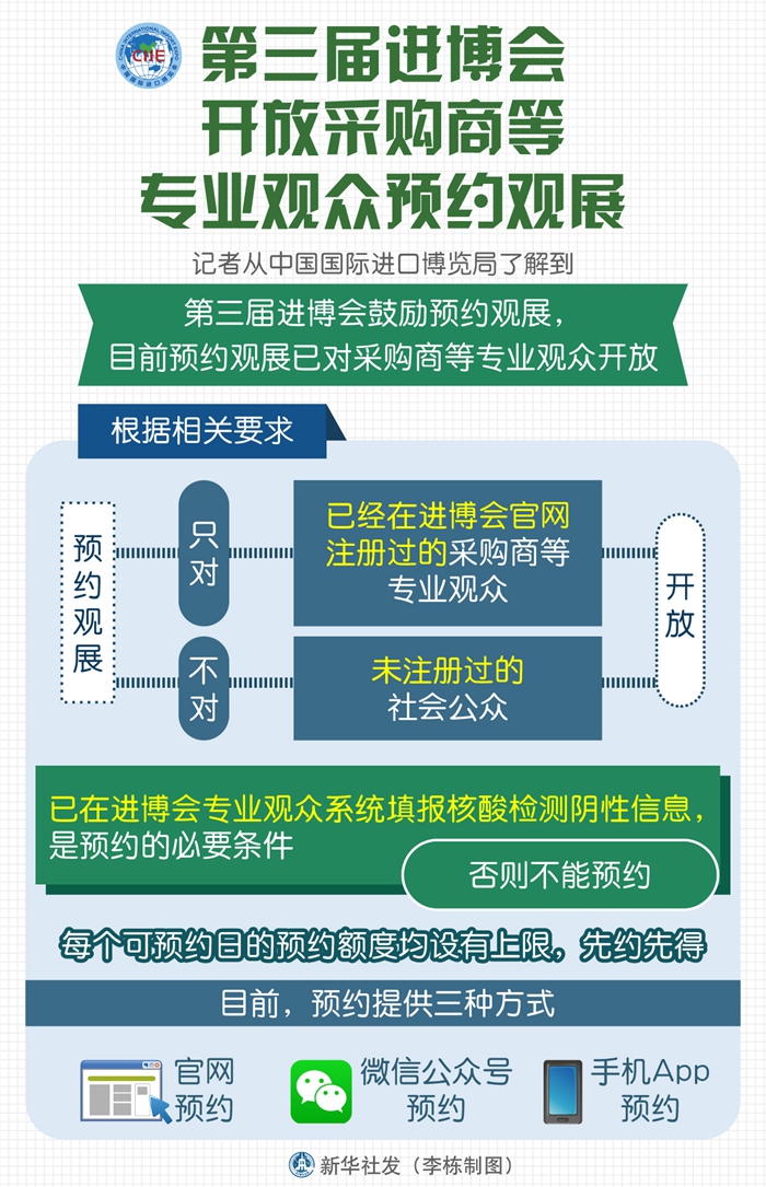 根據(jù)相關(guān)要求,預(yù)約觀展只對已經(jīng)在進博會官網(wǎng)注冊過的采購商等專業(yè)觀眾開放,不對未注冊過的社會公眾開放。