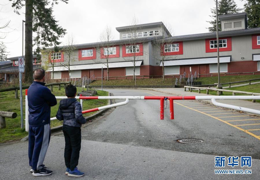 11月15日,在加拿大不列顛哥倫比亞省薩里,居民觀望一所因出現(xiàn)新冠疫情關閉的學校。新華社發(fā)(梁森攝)