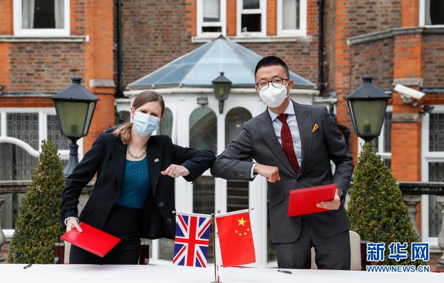 10月16日,在英國倫敦,代表中國國家文物局的中國駐英國大使館文化處一秘于果(右)和代表英國大都會警察局的探員蘇菲·海斯簽署文物接收確認書。新華社記者 韓巖 攝