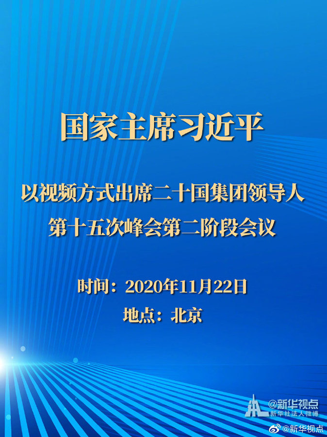 習(xí)近平以視頻方式出席二十國(guó)集團(tuán)領(lǐng)導(dǎo)人第十五次峰會(huì)第二階段會(huì)議