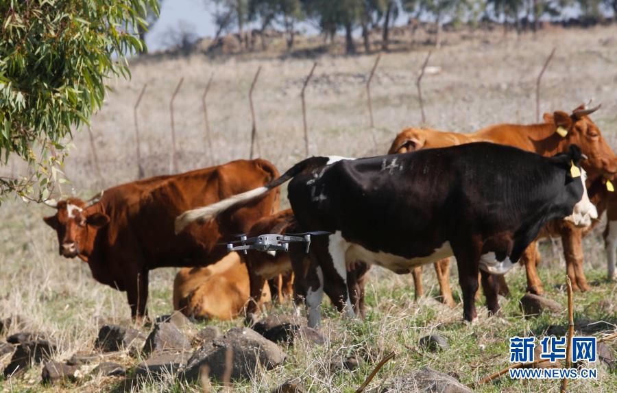 這是11月23日在戈蘭高地拍攝的正在牧牛的無人機(jī)。