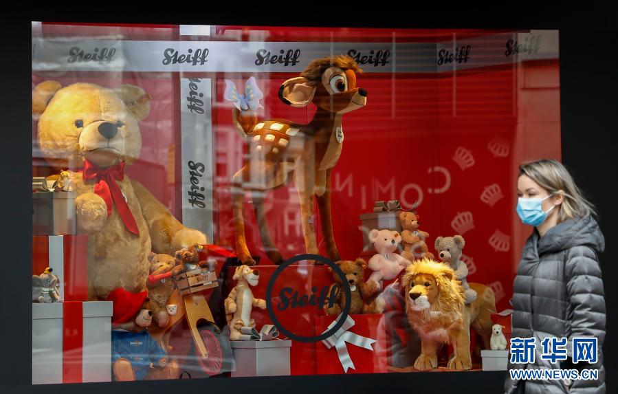 12月2日,一名戴口罩的女子從英國(guó)倫敦一家重新開(kāi)門迎客的商店櫥窗前走過(guò)。