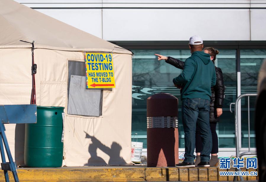 12月3日,在美國(guó)紐約,一名女子指示前往新冠檢測(cè)點(diǎn)的道路。