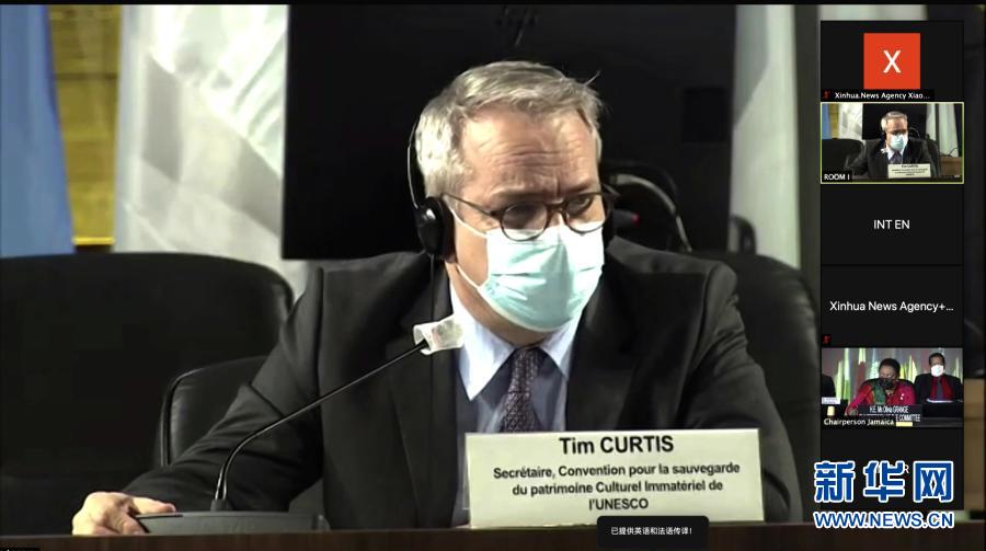 這張12月18日的視頻截圖顯示的是,聯(lián)合國教科文組織《保護非物質文化遺產公約》秘書蒂姆·柯蒂斯在法國巴黎參加線上視頻會議。新華社發(fā)