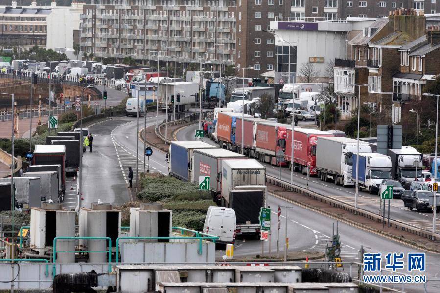 此前,為應(yīng)對(duì)英國(guó)近期出現(xiàn)的變異新冠病毒,法國(guó)宣布從當(dāng)?shù)貢r(shí)間20日午夜起48小時(shí)內(nèi)禁止來自英國(guó)的所有人員旅行,包括與公路、鐵路、航空、水路有關(guān)的貨運(yùn)人員旅行。這給英國(guó)與歐盟國(guó)家之間的貨物運(yùn)輸帶來極大影響。自邊境關(guān)閉以來,大約有2850輛卡車被困在英國(guó)肯特郡。